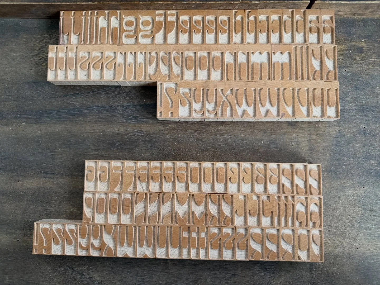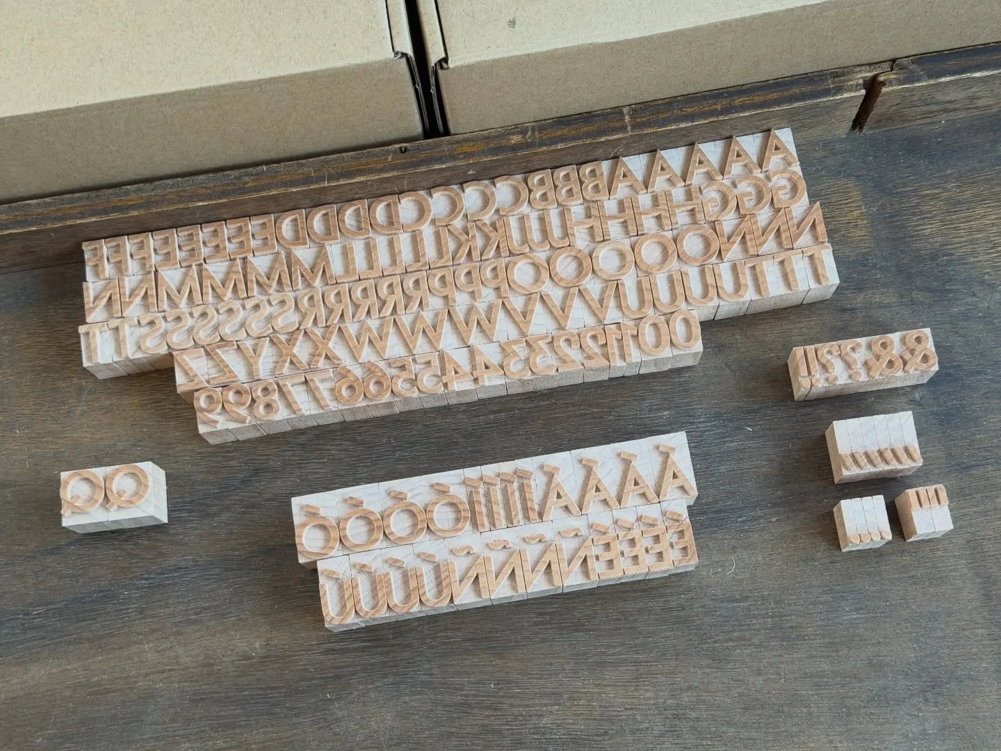 We make new wood type, ornaments and custom designs for letterpress printers. Our type is CNC milled and polished for a smooth print surface before finishing with shellac.